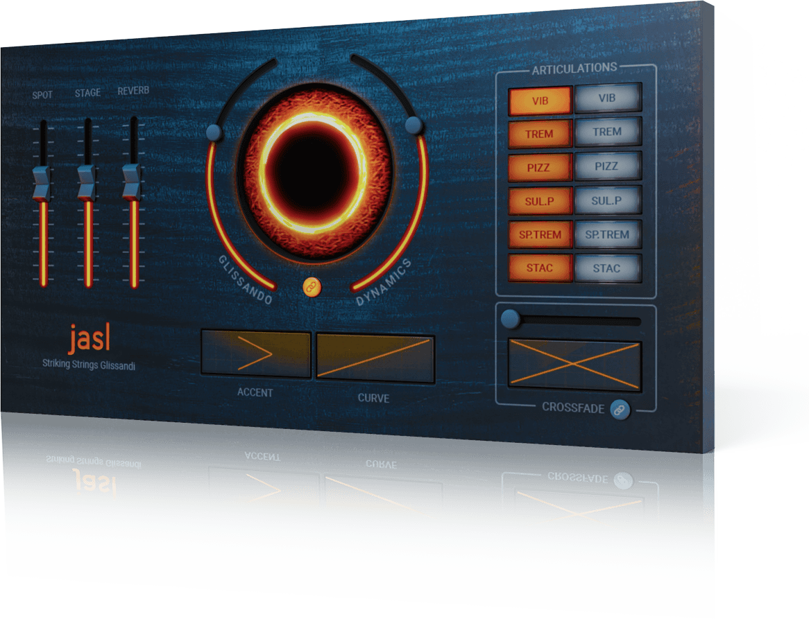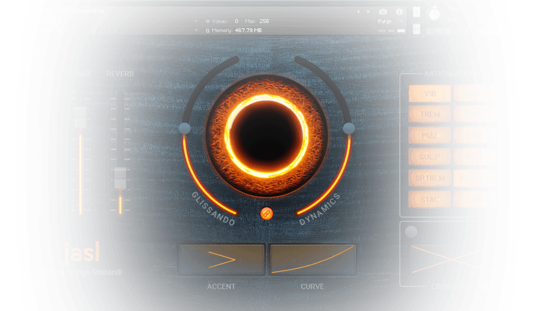 Take control of the expressivity with the dynamics slider, curve controller and accent controller. There are three dynamic layers at your disposal: mp, ppp and fff. Use the link button to synchronize the dynamics with the glissando for a powerful -plug and play- glissando tool.